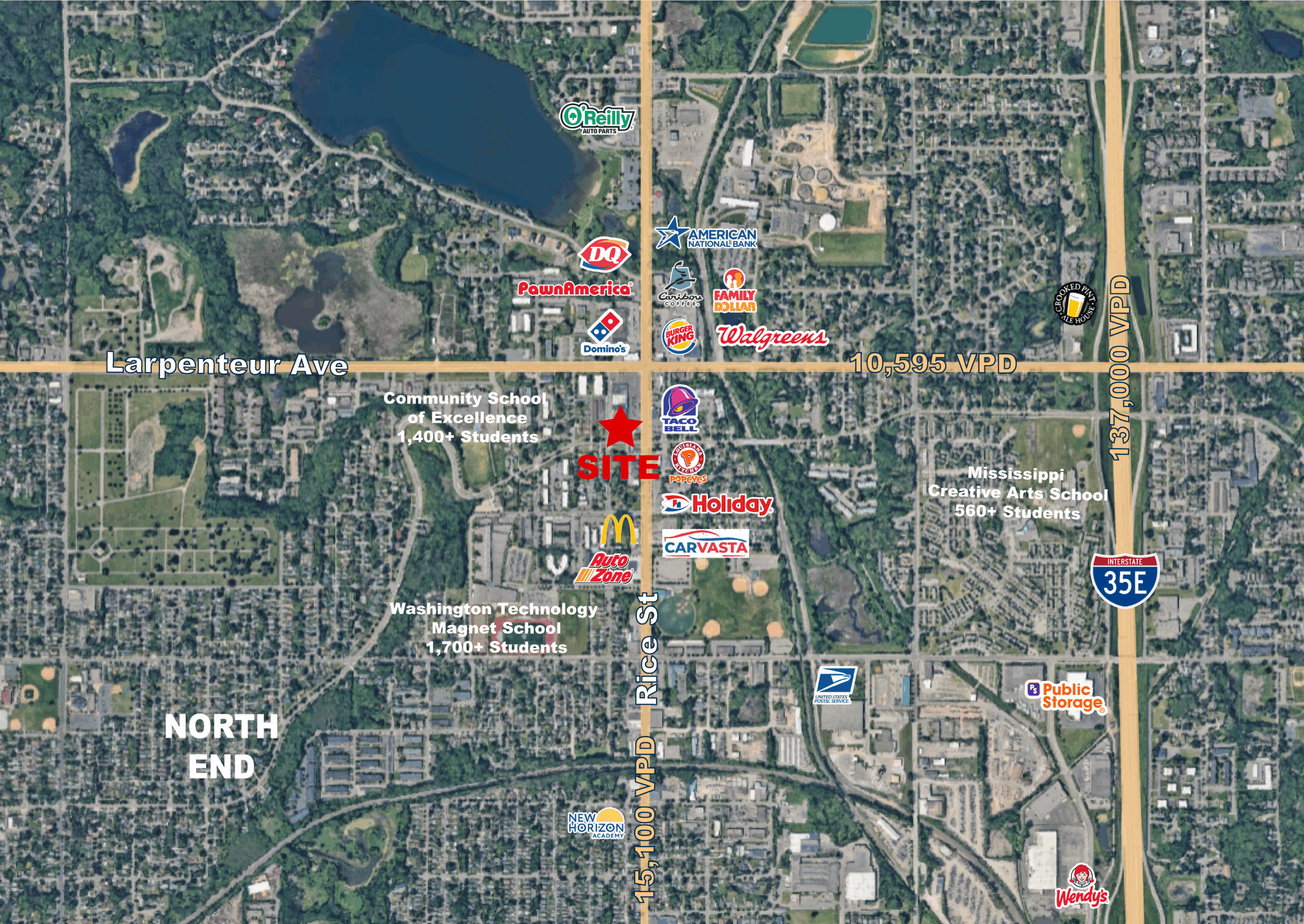 • Located along Rice Street where traffic counts average 15,100 VPD.