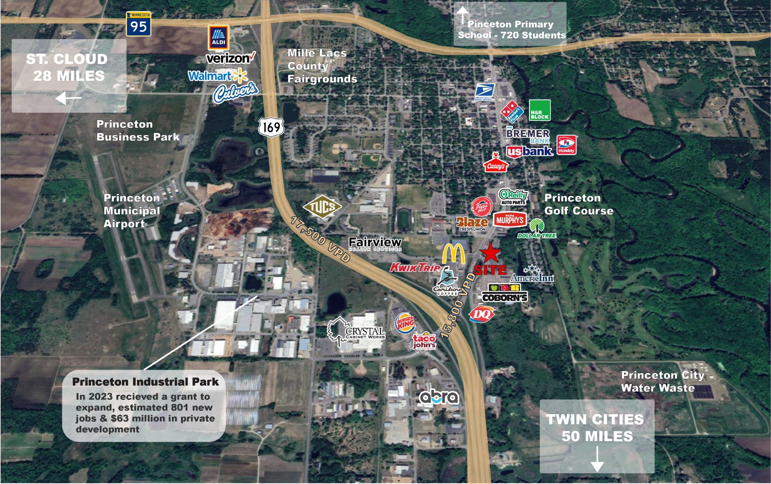 - Well located just off Highway 169 with direct access on South Rum River Drive.