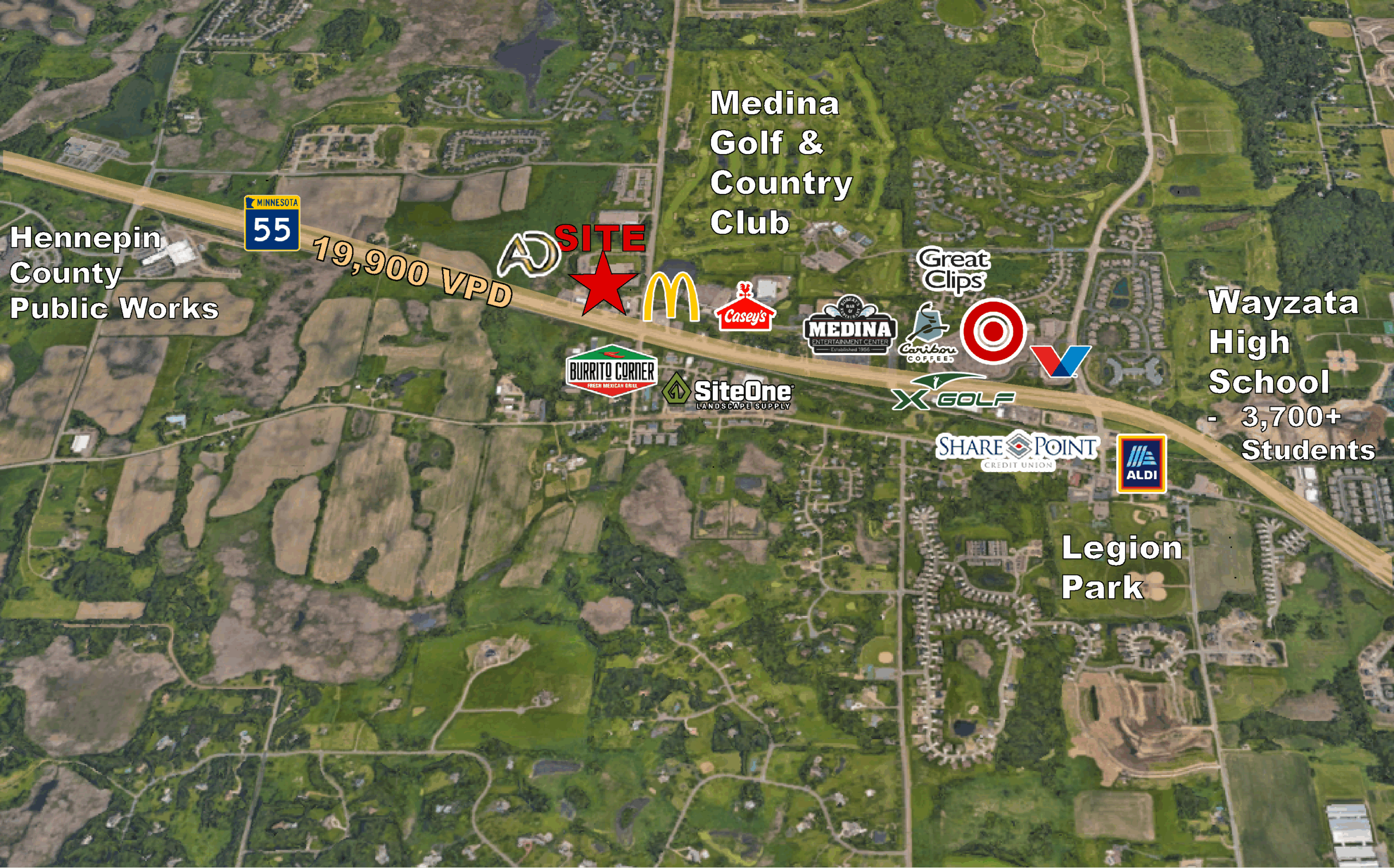 - At the intersection of Pinto Drive and Olson Memorial Highway (Hwy 55)