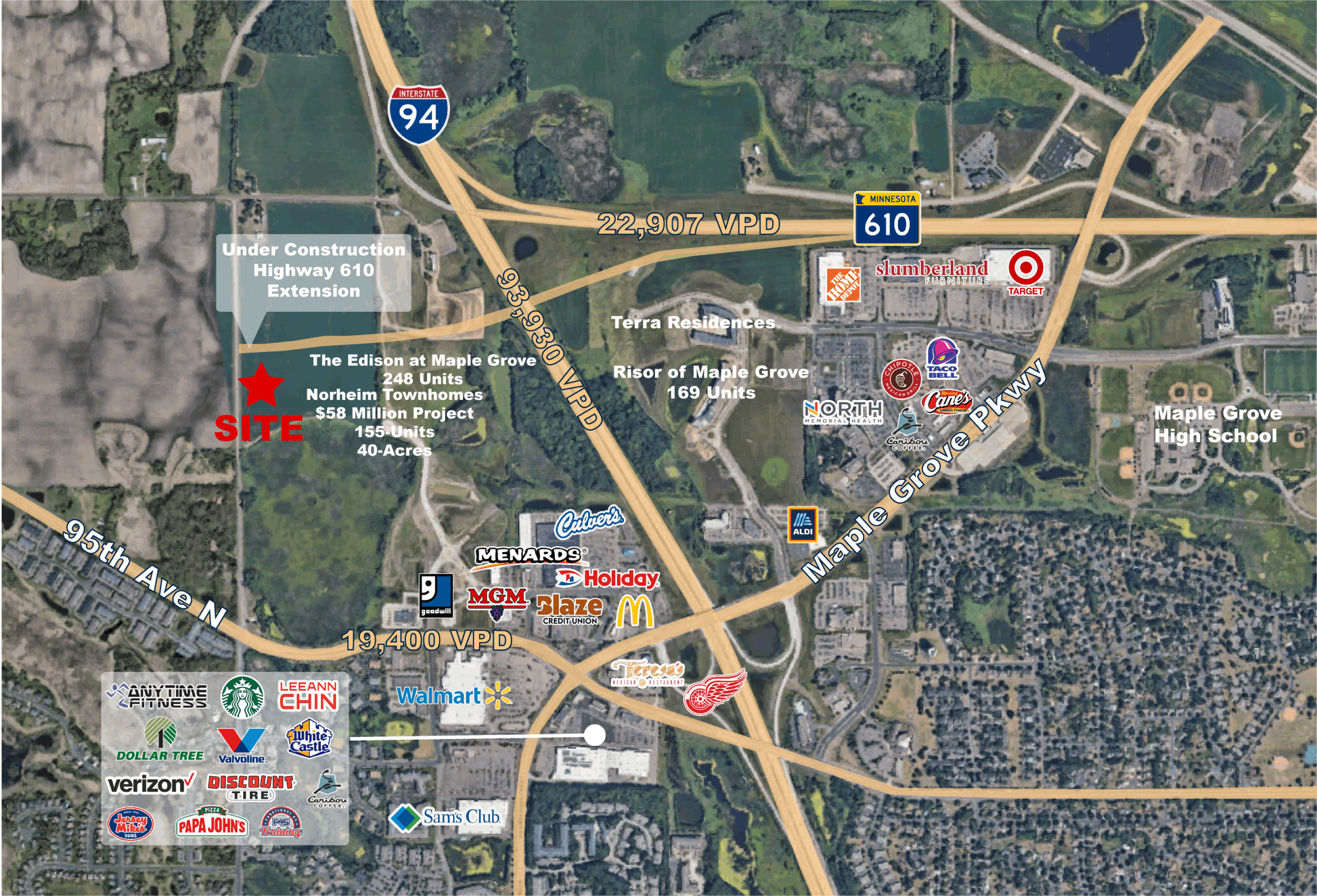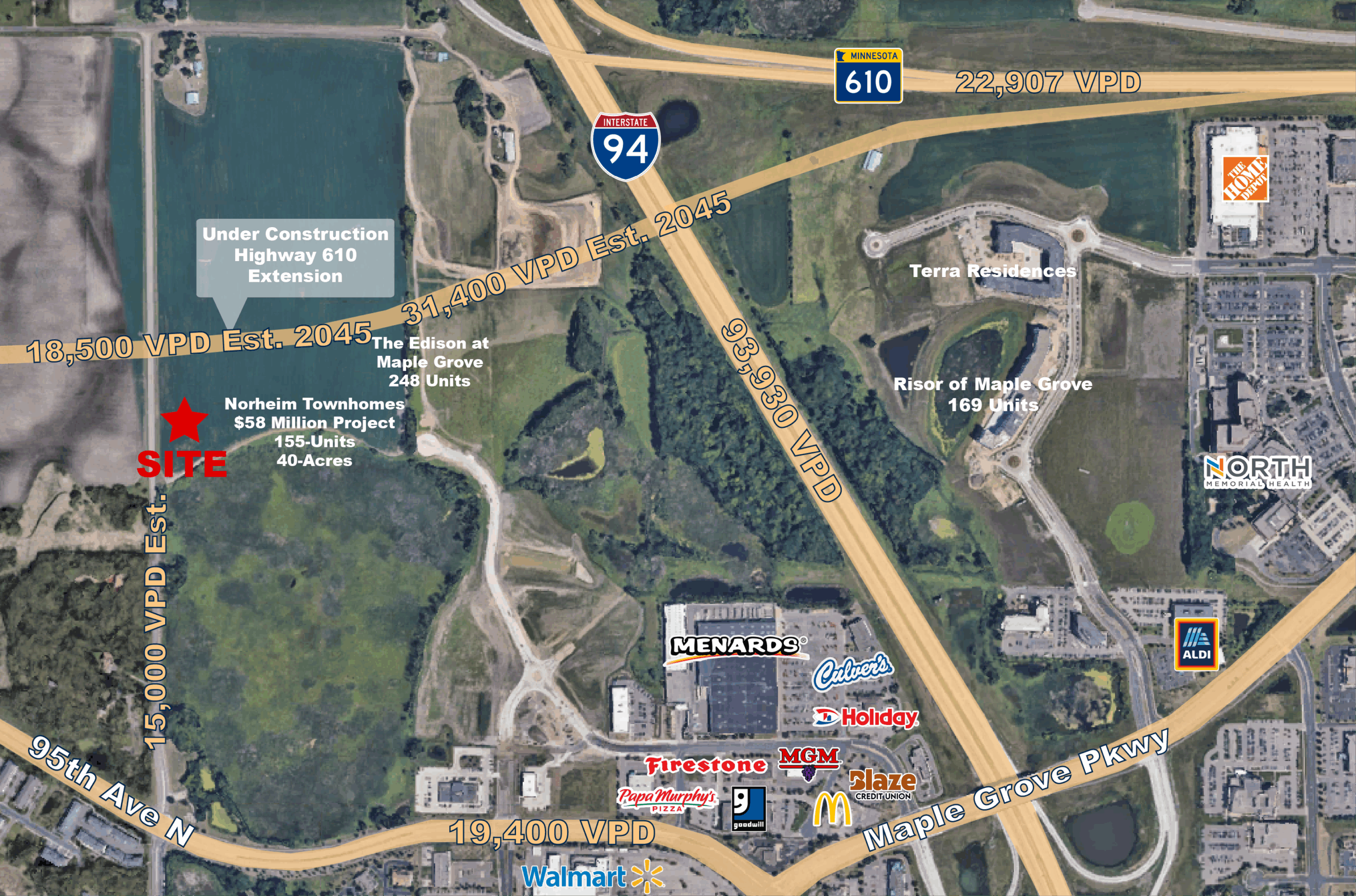 - Located next to the Norheim Townhomes, a $58 Million project with 155 Townhomes and The Edison at Maple Grove Apartments with 248 Units.